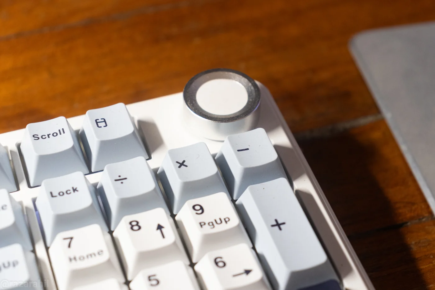 This model retains the full numeric keypad, including a full-size ‘0’ key. The rest of the essential function keys are strategically arranged to trim down the overall chassis size without sacrificing functionality. The keyboard also conveniently includes a dedicated volume knob.